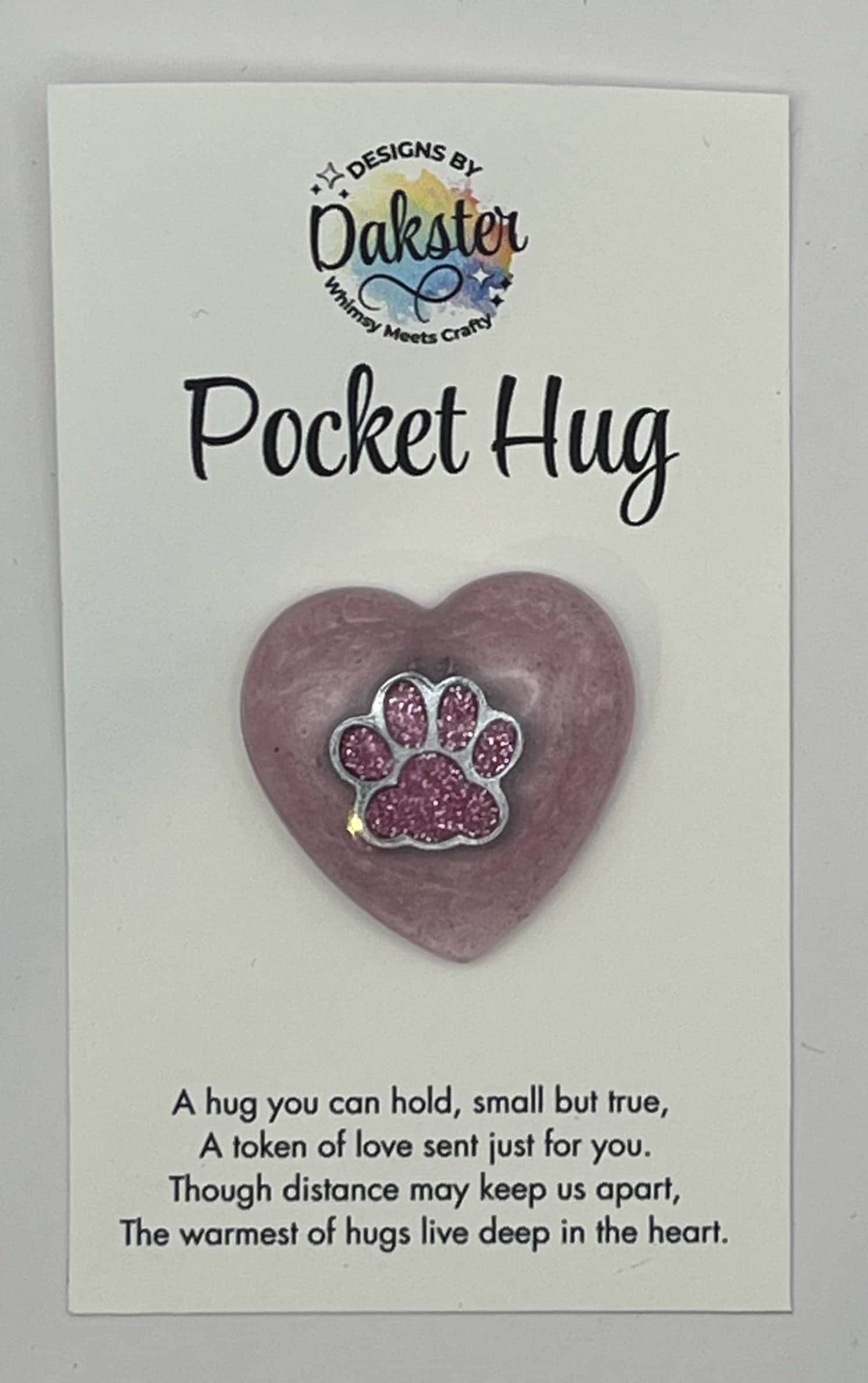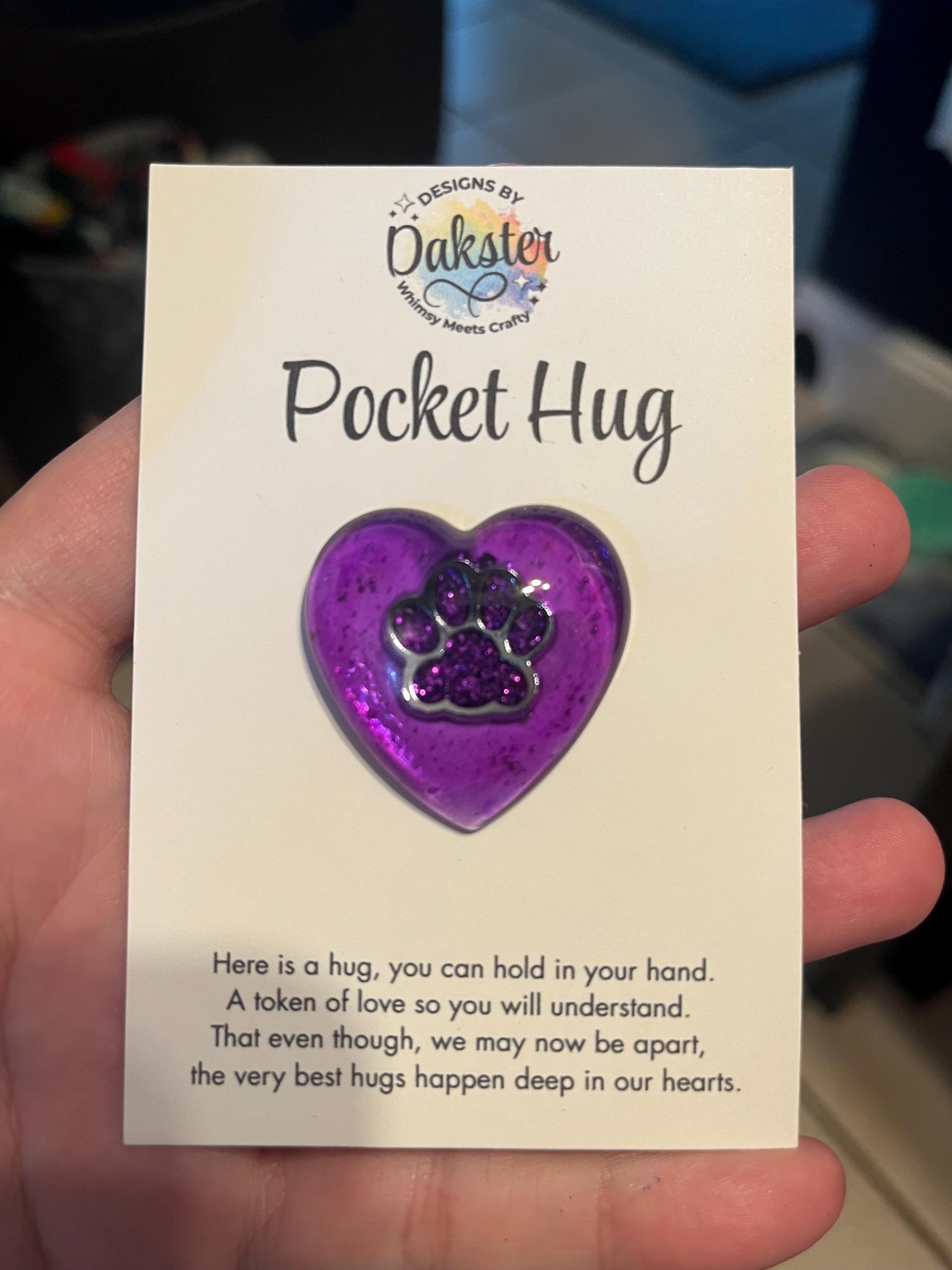 These handcrafted Pet Parent Pocket Hugs are a heartfelt way to keep your beloved pet closeβwhether theyβre still by your side or watching over you from the rainbow bridge. Each hug is made with love and care, small enough to fit in your pocket, bag, or on your desk for a gentle reminder of your fur babyβs presence.